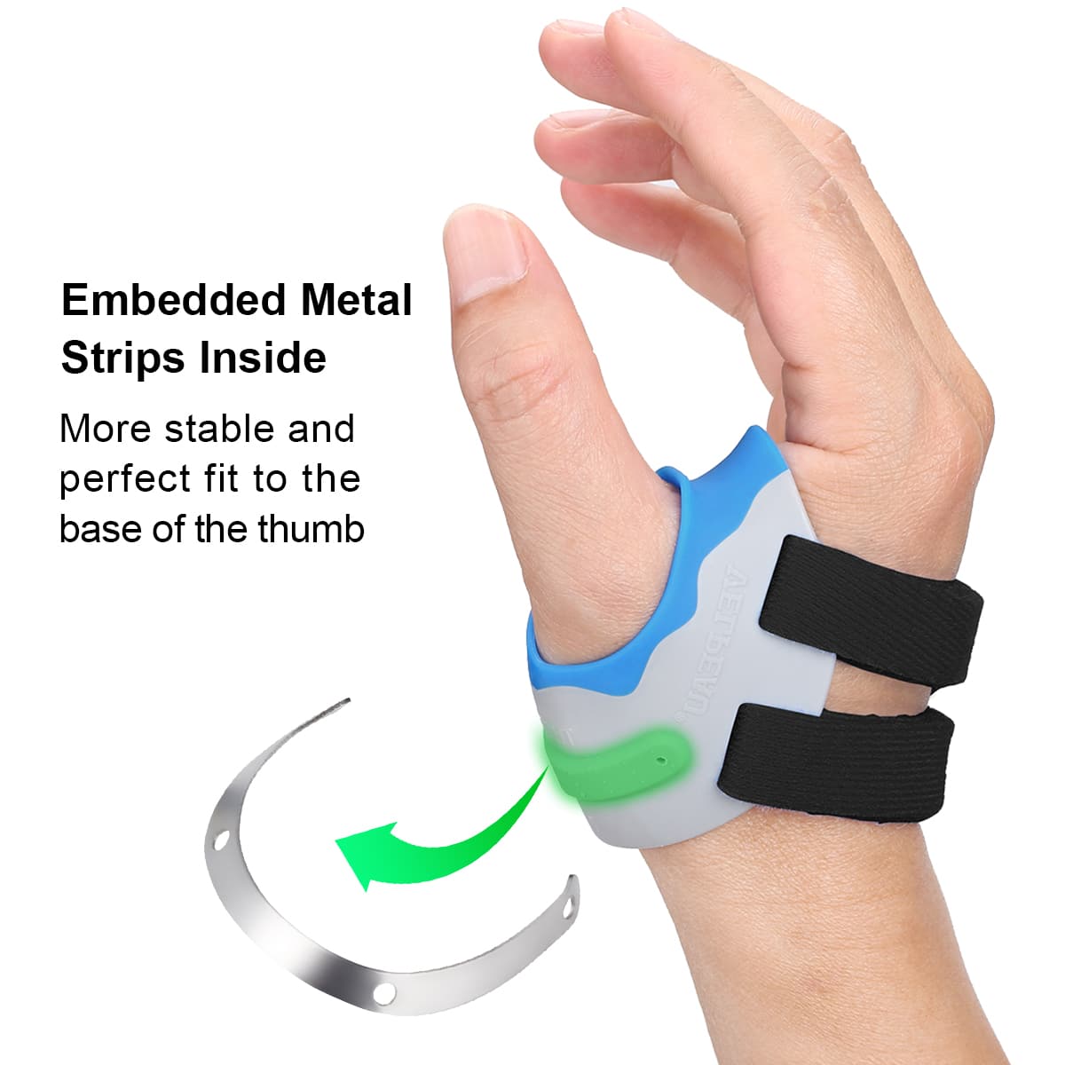 - There is a metal strip built into the product, it surrounds the root of the thumb and can be shaped at will. The metal strip can make the product fit the root of the thumb perfectly, has high comfort, and do not affect normal thumb activities.