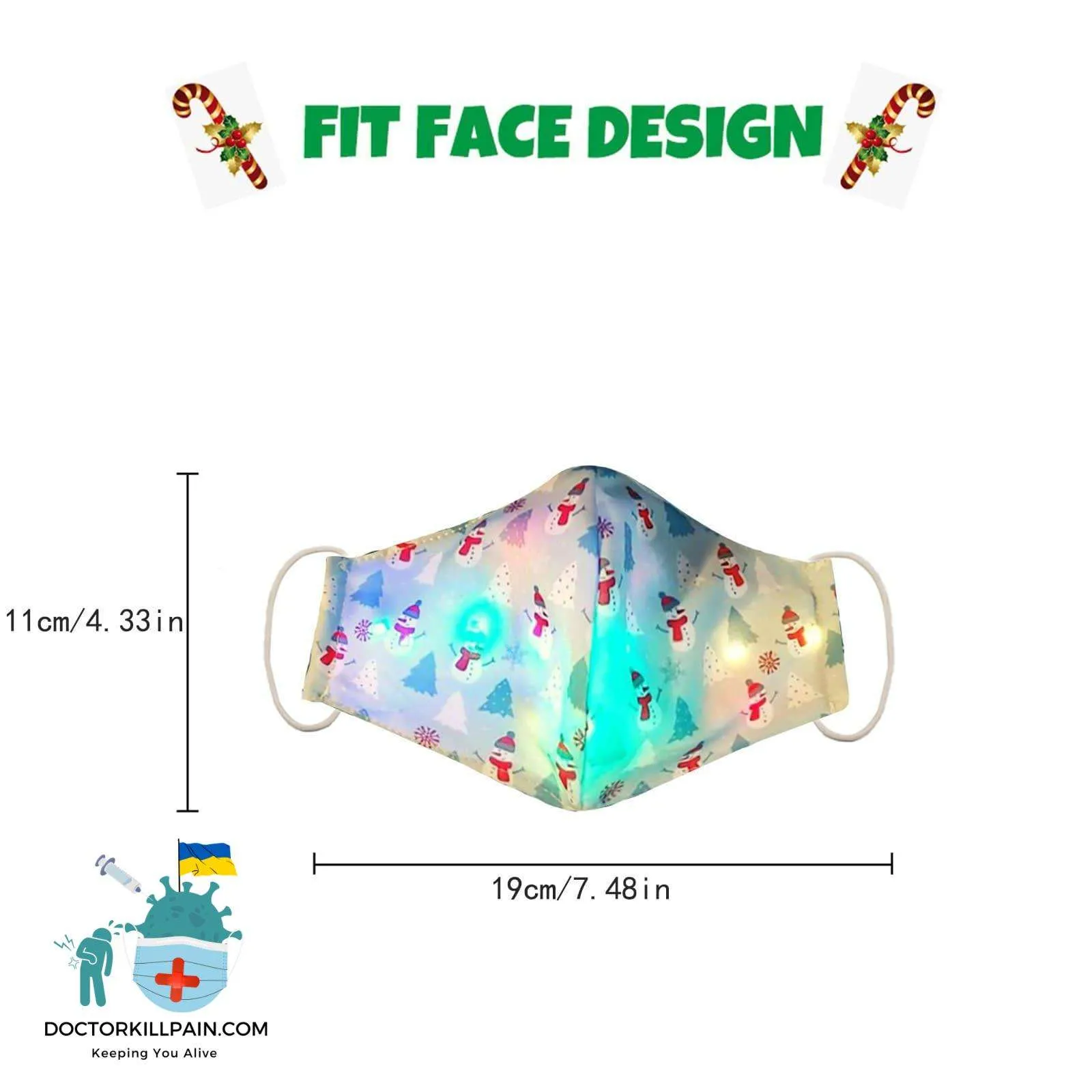 We can guarantee that the colors in the pictures match the actual colors of the Face Mask With Christmas Lights. However, don’t forget that the screens of most devices tend to distort the true colors.
