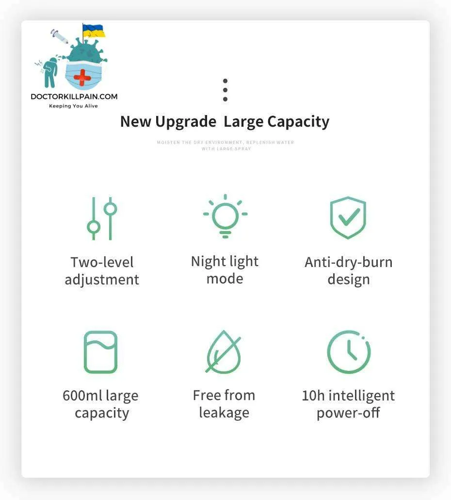 - Feature 2: USB Portable humidifier, USB Air Humidifier, Night Light Mode