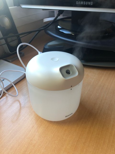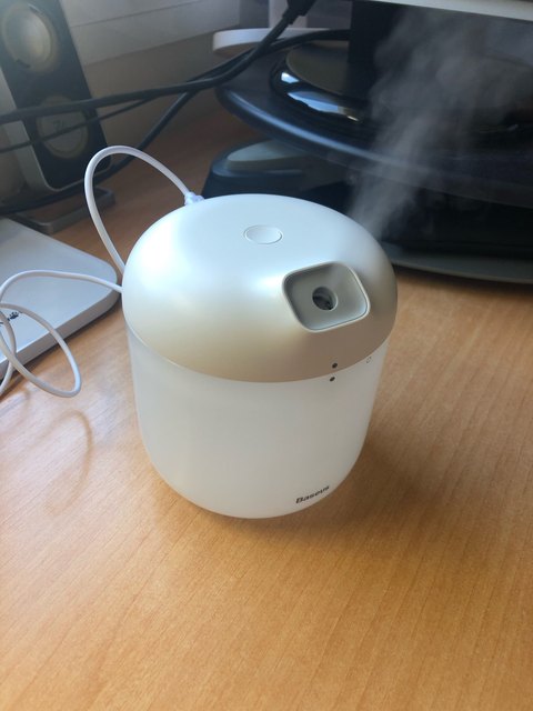 Received in only 15 days by registered post. The device is original from Baseus, this Chinese brand of small appliances that is so surprising to me lately. It has 2 powers the humidifier: stronger or less, which are activated by giving the only button it has once, or 2. If you give it 3 stops. In addition, if you press the 2-3 seconds button you have the options to turn off the ambient light you have or it will leave on. It has a security system that prevents it from burning if there is any fault. And he says it is not recommended to have scents because it is bound. 600ml capacity for 10h. Also bring a spare part (I understand it will be consumable). It includes usb cable to connect to the current although no wall pin. It comes in your box and nicely packaged, with instructions in English. Very happy with my humidifier! Perfect for environments of people with dry eye problems or voice problems like me.